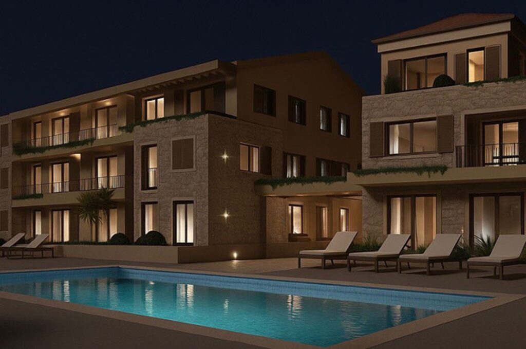 Predstavljamo vam jedinstvenu priliku za kupovinu stanova u luksuznom stambeno-turističkom kompleksu u izgradnji, smještenom na prestižnoj lokaciji Kovačko Polje, između Budve i Tivta, na samo 4 minuta od najlepše plaže Jaz i 15 minuta od Tivta i 20 min od Starog grada Kotora.