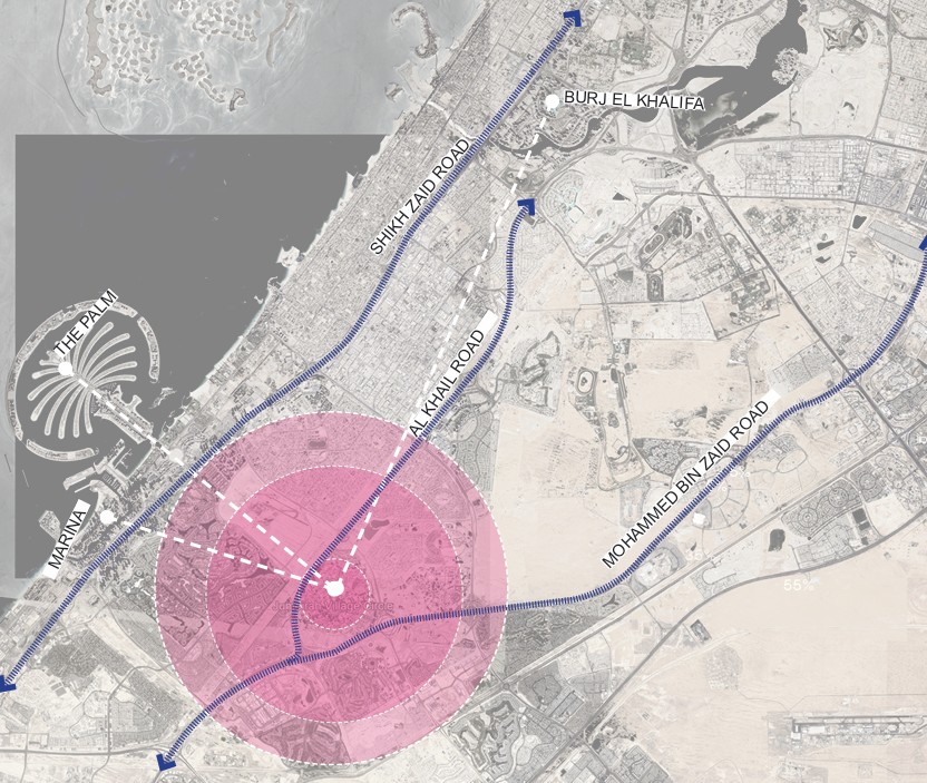 Jedna od ključnih prednosti projekta je izuzetna povezanost sa ostatkom grada. Direktan pristup glavnim saobraćajnicama, Al Khail Road i Sheikh Mohammed Bin Zayed Road, omogućava brzu i jednostavnu komunikaciju sa svim važnim djelovima Dubaija. Dubai Marina i JBR udaljeni su svega 15 minuta, Downtown Dubai i Burj Khalifa 20 minuta, Mall of the Emirates 15 minuta, dok je Međunarodni aerodrom Dubai (DXB) na oko 25 minuta vožnje. U neposrednoj blizini nalaze se Circle Mall, parkovi, šetališta i trkačke staze, kao i škole, zdravstvene ustanove, Dubai Sports City i Motor City, što ovu lokaciju čini idealnom za porodični život, ali i za dugoročno izdavanje. JVC bilježi konstantan rast potražnje za nekretninama, što ovaj projekat čini atraktivnom investicijom sa visokim potencijalom povrata i rasta vrijednosti.