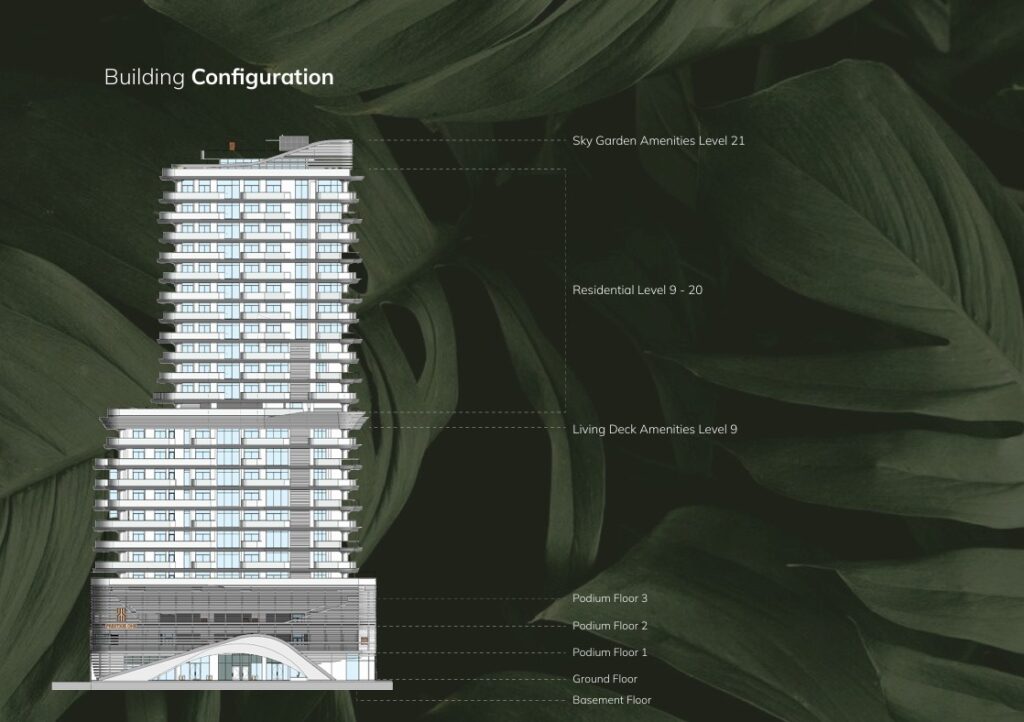 Konfiguracija objekta: Podrum + Prizemlje + 3 podijum etaže + 20 spratova